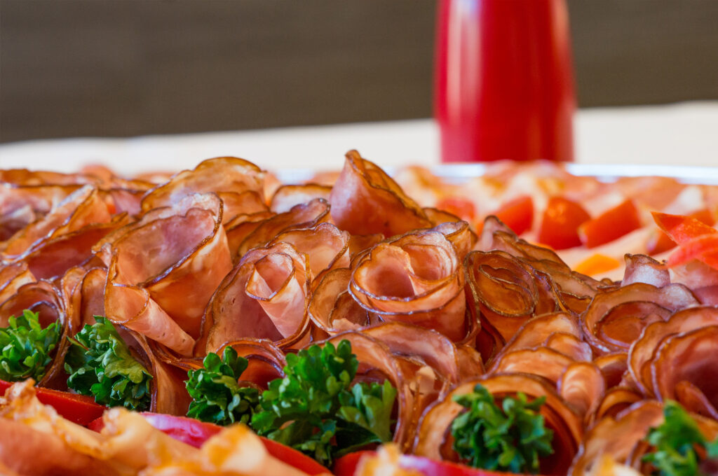 Garniert mit diversen Wurst- oder Käsesorten. Auf Wunsch mit Räucherlachs.